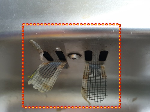 그리고 '이곳'까지 청소해야 완벽한 싱크대 개수대 청소가 된 셈이겠죠. 해충들이 드나들기 쉬운 구멍을 막아 놓았던 것을 제거하고 새것으로 교체해 붙이기로 했습니다.