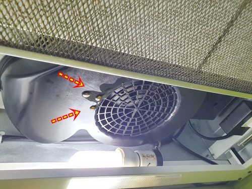 어쩌다 한 번씩 집에서 요리를 해 먹는데 날씨가 더워서일까요.... 후드에서 뭔가가 한 방울 두 방울 떨어져서 정말 놀랐습니다.