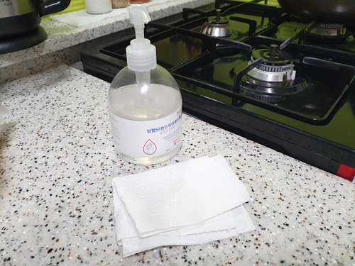 가스레인지 후드는 빼서 과탄산소다로 닦고 나머진 손소독제로 닦았습니다.