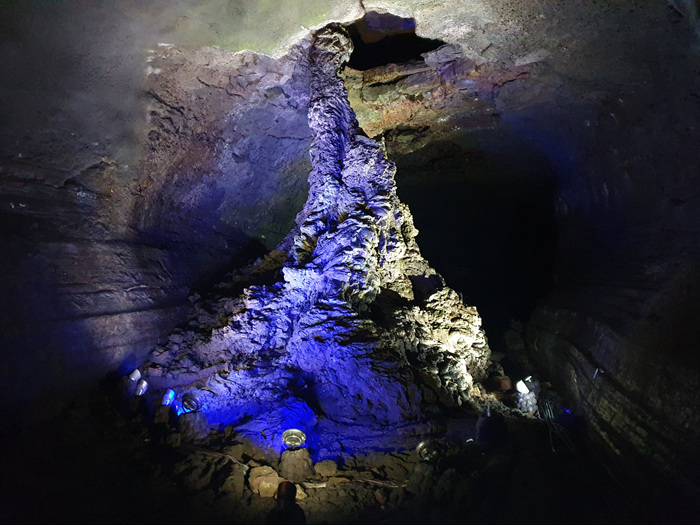 만장굴의 하이라이트 용암석주까지 구경 가능하다.