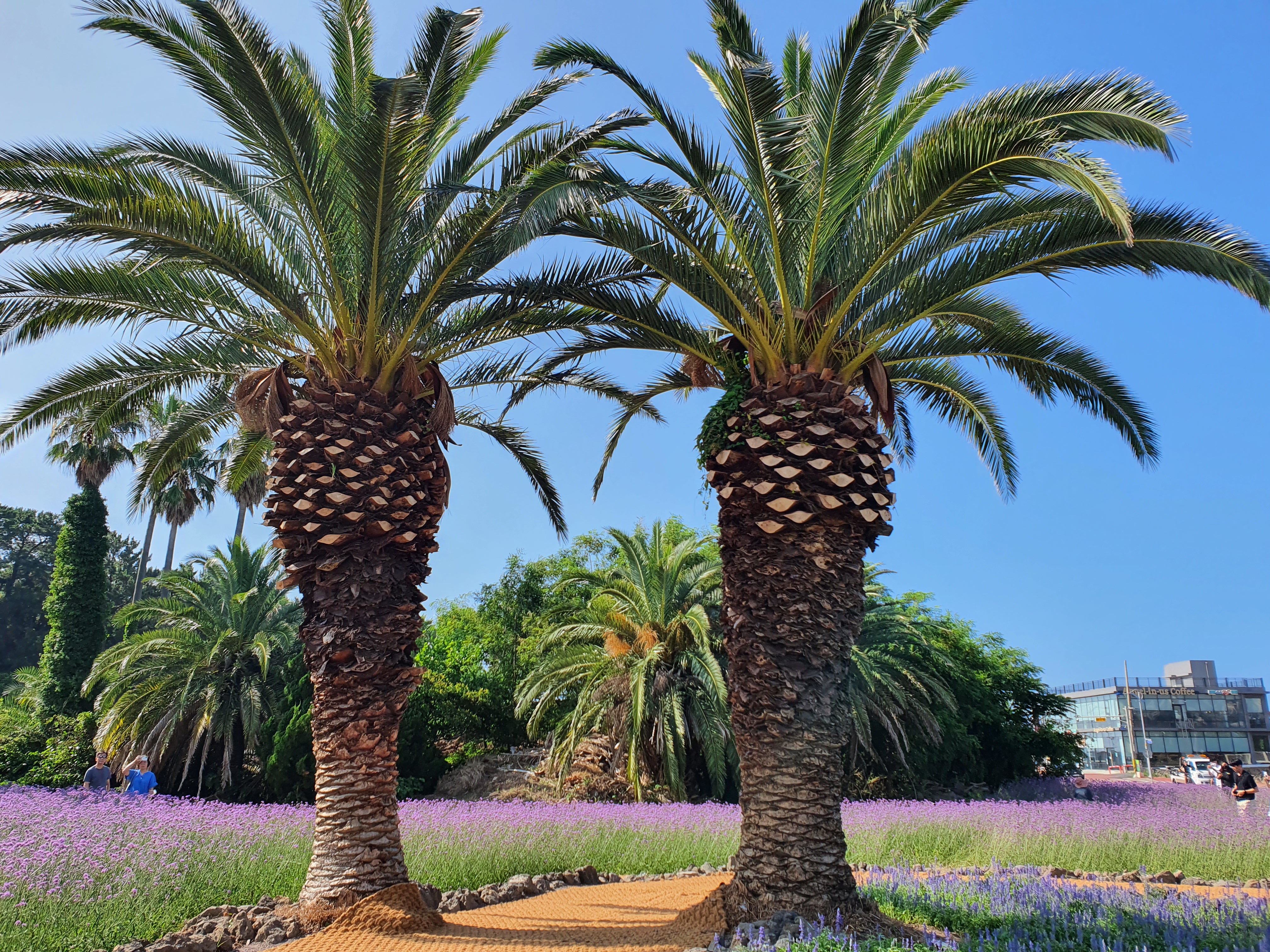 제주에서 흔히 보는 나무도 꽃들과 정말 잘 어울리는 것 같았어요.