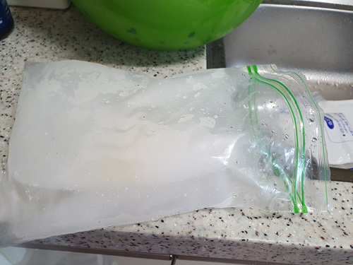 요즘엔 과자봉지 지퍼백도 워낙 튼튼해 아이스팩으로 활용하기도 정말 괜찮습니다.