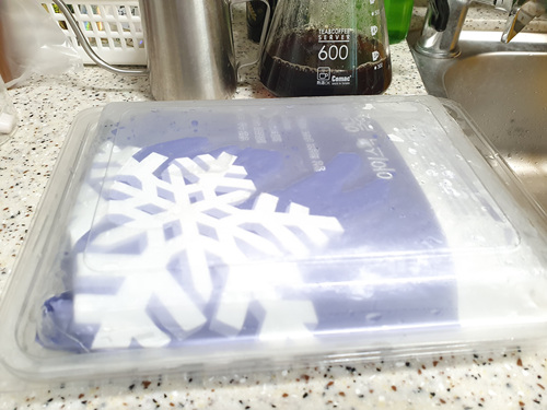 평평하게 만든 뒤 플라스틱 케이스에 넣은 뒤 냉동실에 얼리는 겁니다.