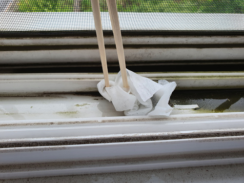 물티슈가 더러워진 만큼 창틀은 깨끗해졌어요.