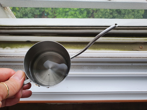 비 온 뒤 창틀에 물기가 있을 때 청소하면 수월하겠지만 그렇지 못할 경우엔 물을 뿌린 후 물티슈로 청소하면 비 온 뒤 청소하는 효과 같이 될 겁니다. ^^