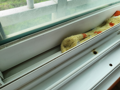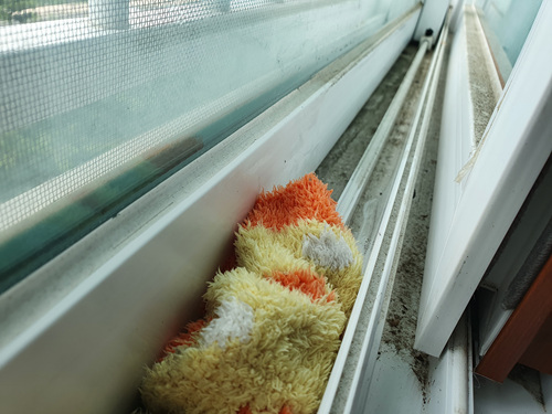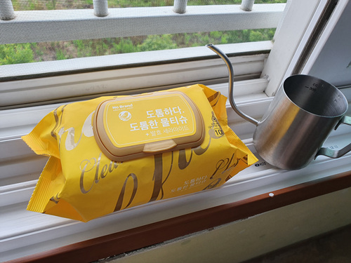 비 온 뒤 창틀에 물기가 있을 때 청소하면 수월하겠지만 그렇지 못할 경우엔 물을 뿌린 후 물티슈로 청소하면 비 온 뒤 청소하는 효과 같이 될 겁니다. ^^