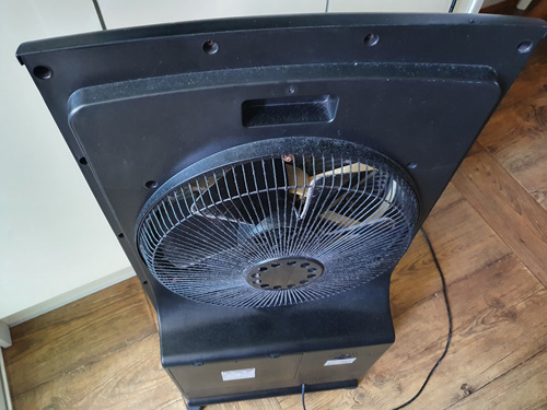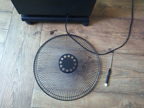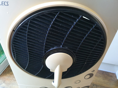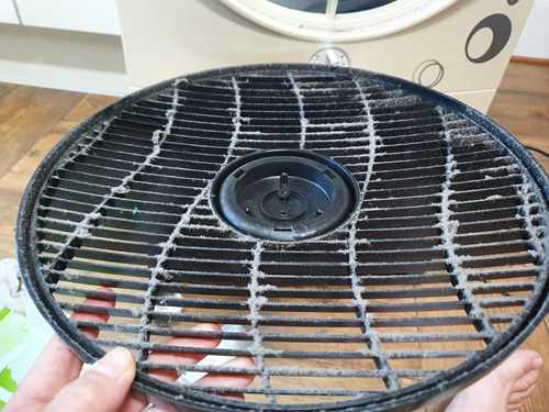 선풍이 앞부분을 떼어 내니 안쪽에 먼지가 가득합니다.