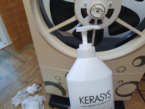 하여간 선풍기 날개는 물티슈 - 손소독제로 닦은 뒤 마무리로 린스나 트리트먼트로 한 번 더 닦아 줍니다.