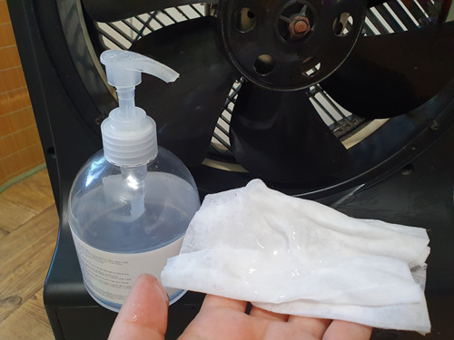선풍기 날개를 닦은 후에는 손소독제를 이용해 한 번 더 닦아 주면 훨씬 산뜻해요.