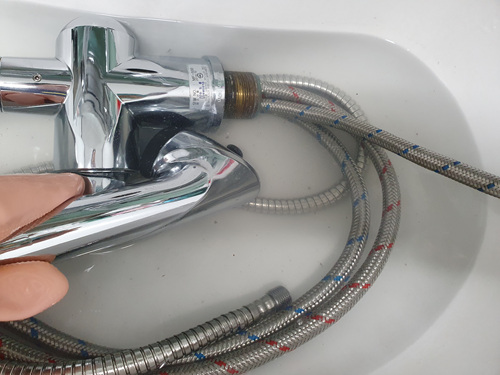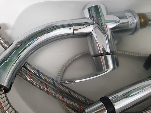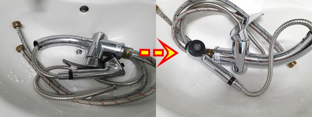 누가 보면 새것이라고 할 정도로 깨끗해진 수전을 교체 작업하고 있는 모습이에요.