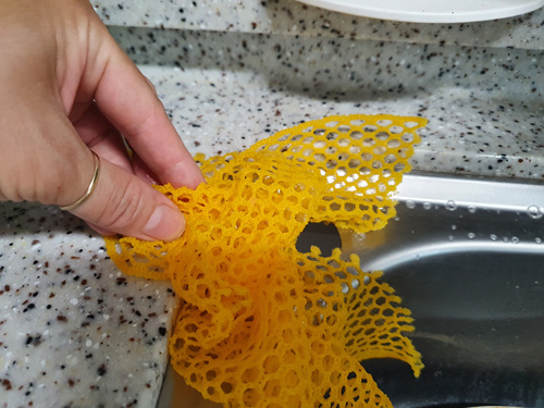 양파망으로 한 번 더 씻은 뒤 물로 깨끗이 헹구면 완전 대박이라는 말이 절로 나올 겁니다.