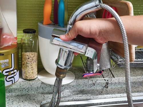 하는 생각도 들었지만 당장 수전에서 물이 줄줄 새는 상황이라 그냥 둘 수도 없어서 이것이라도 사용해 보기로 했지요.