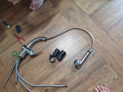 사용 중이었던 물이 줄줄 새던 수전은 다 뜯어 내고 깨끗이 씻어 놓은 수전으로 교체할 겁니다.