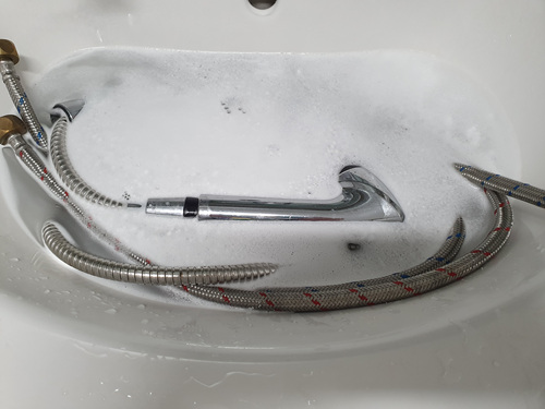 과탄산소다에 담갔을 뿐인데 완전 새 수전처럼 변해있죠.