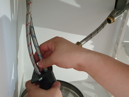 누가 보면 새것이라고 할 정도로 깨끗해진 수전을 교체 작업하고 있는 모습이에요.