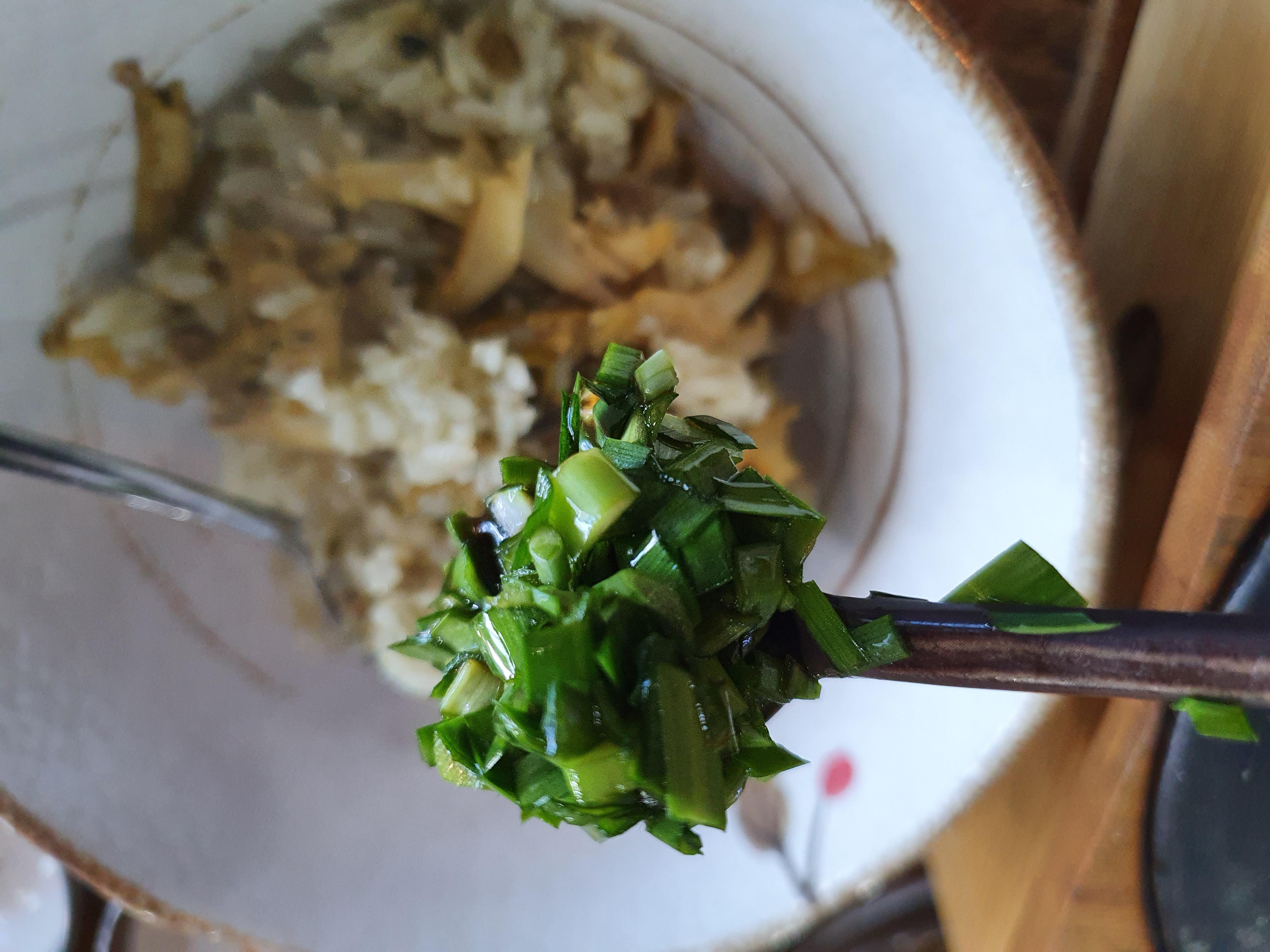 부추 들어간 간장을 넣어 먹으면 다른 반찬이 필요 없는 간장밥이 됩니다.
