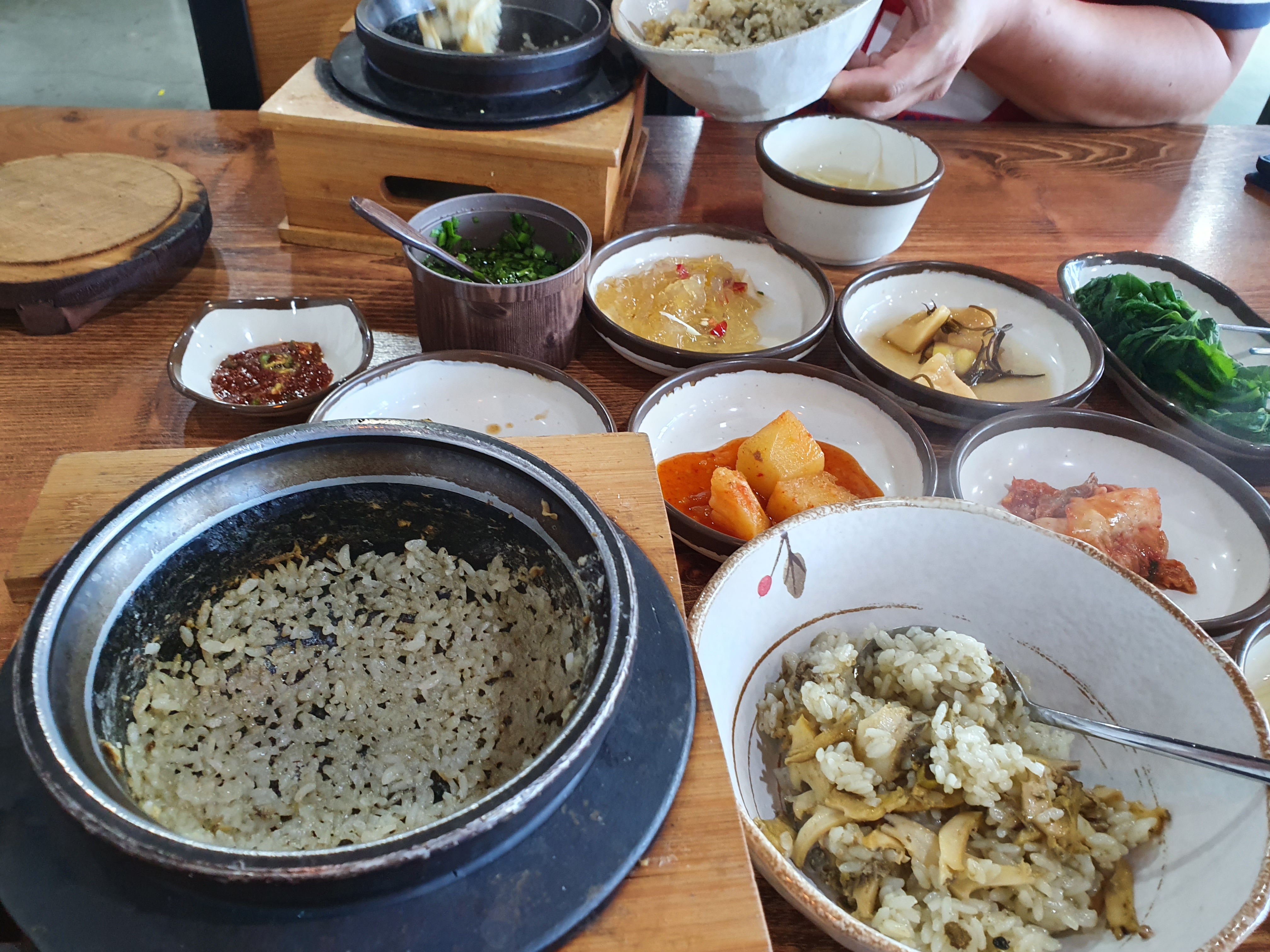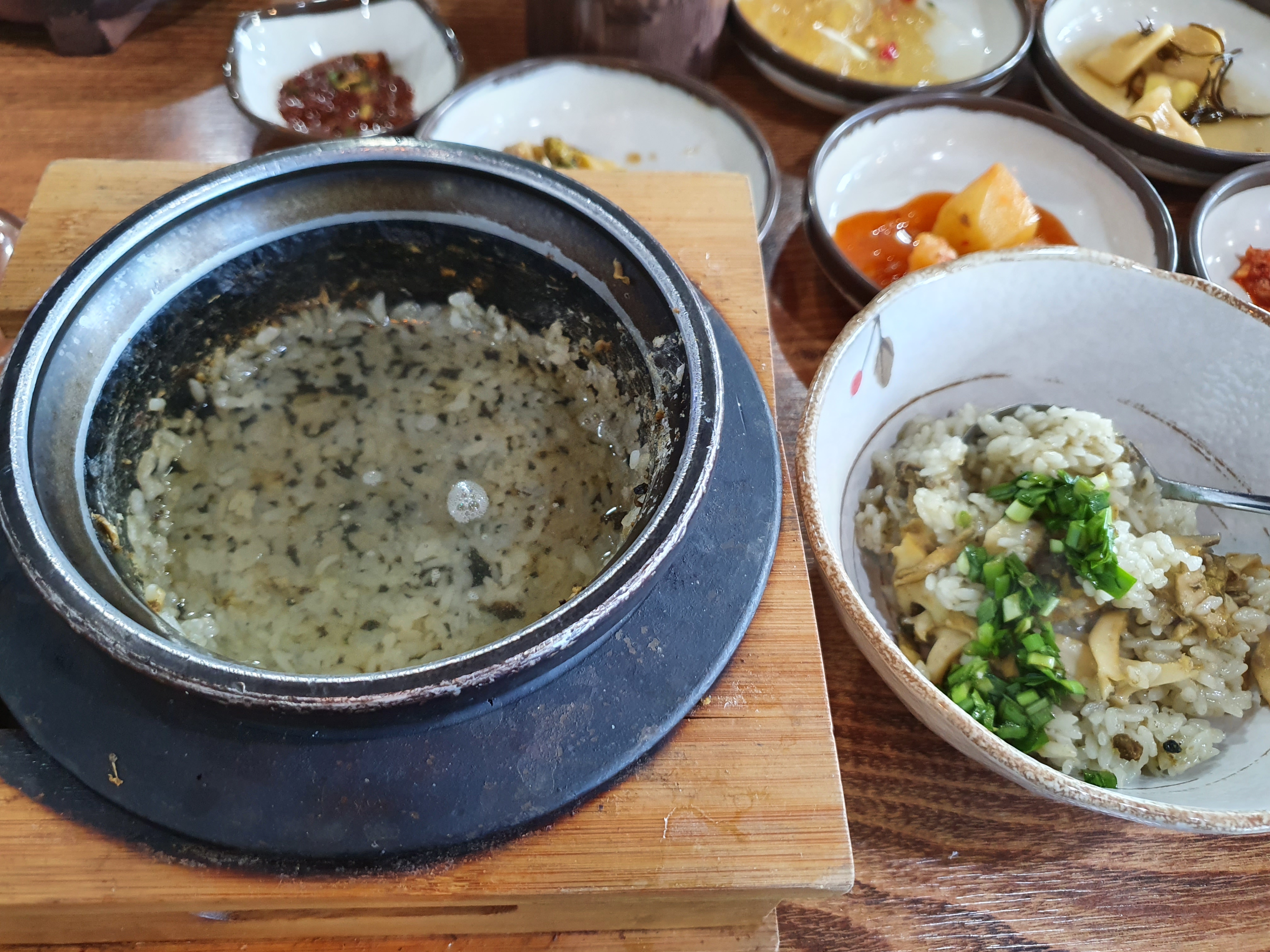 깔끔한 상차림에 전복돌솥밥이 나왔습니다.