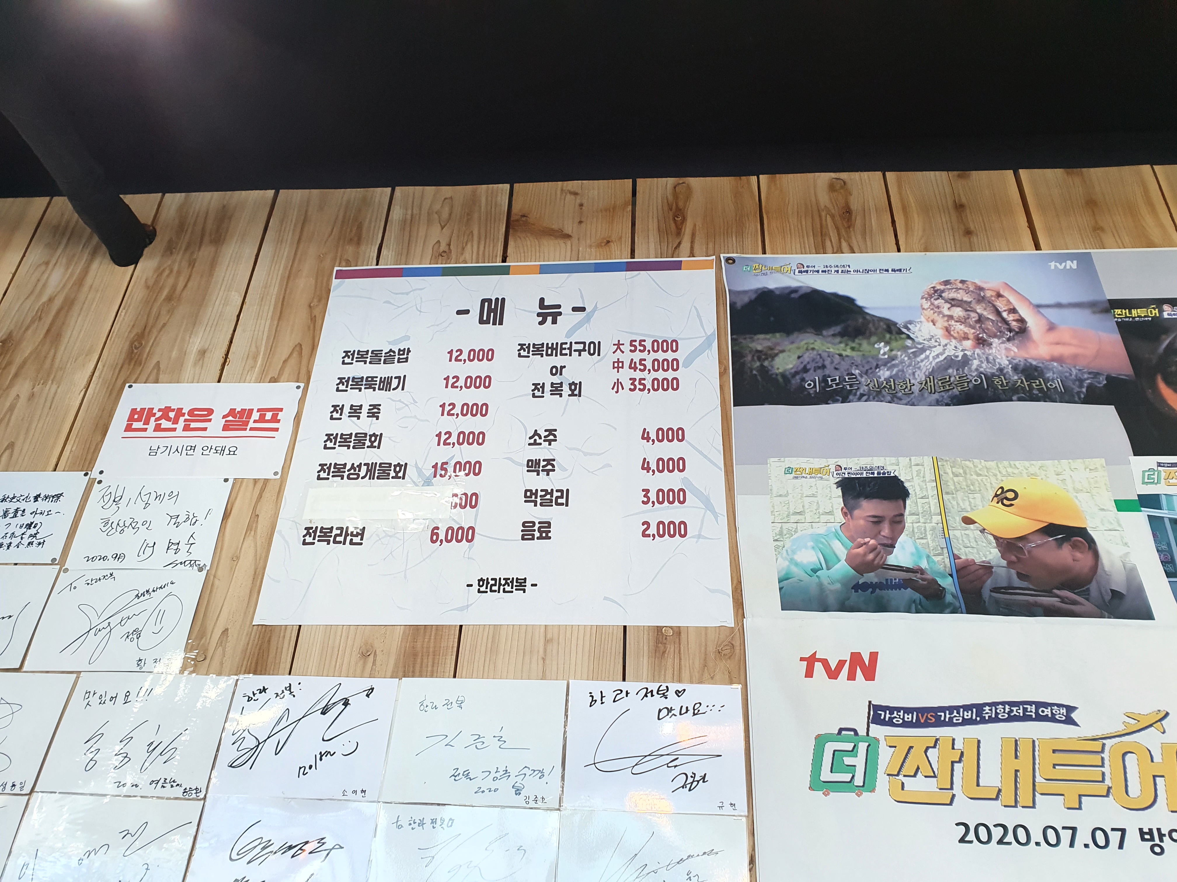 역시나 가격표를 보니 제주도 전복돌솥밥집에 비해 조금 저렴했어요.