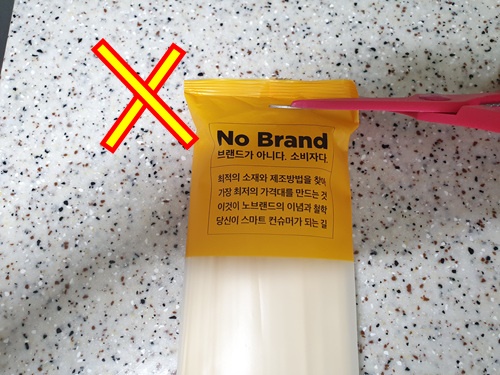 그냥 위부분을 싹둑 잘라서 국수를 꺼내지 않으신가요?