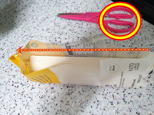 그냥 위부분을 싹둑 잘라서 국수를 꺼내지 않으신가요?