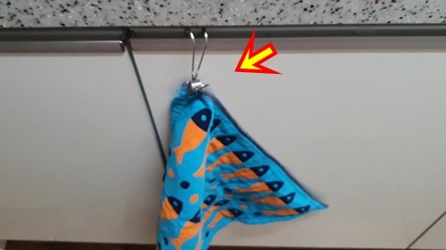 요즘엔 고무장갑에 고리를 끼워 파는 것도 많긴 하지만 그렇지 않을 경우엔 이렇게 집게를 이용해 보세요.