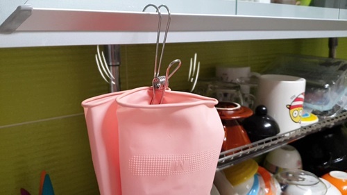 설거지 후 고무장갑을 걸어 둘 때 아주 유용하게 집게가 사용됩니다.