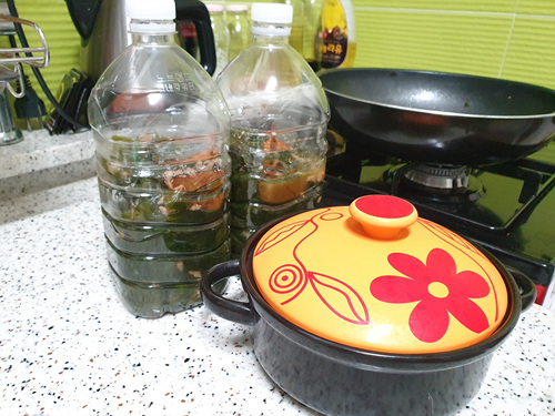 페트병에 하루 먹을 만큼씩 담았다. 그리고 저녁에 먹기 위해 냄비에도 한 그릇 담아 두었다.
