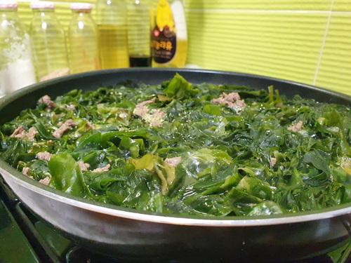 미역국이 넘쳐날 정도로 푹 끓여지면 맛있는 냄새가 온 주방을 진동한다.