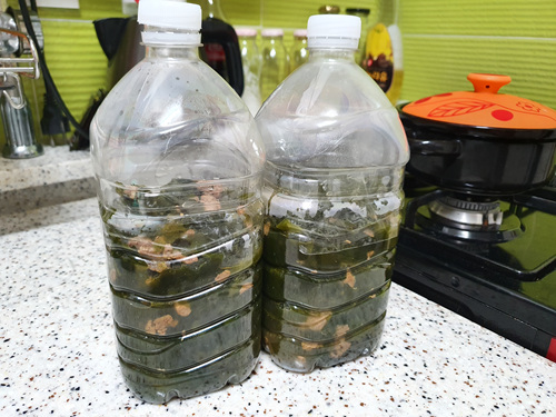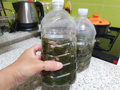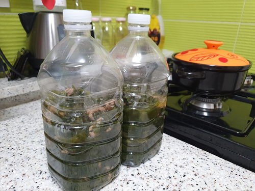 페트병에 하루 먹을 만큼씩 담았다. 그리고 저녁에 먹기 위해 냄비에도 한 그릇 담아 두었다.
