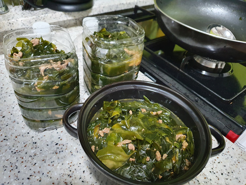 미역국 한 솥을 끓였지만 매일 먹는 건 아니고 먹고 싶을 때마다 꺼내 데워 먹으면 되니 엄청 편하다.
