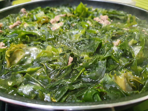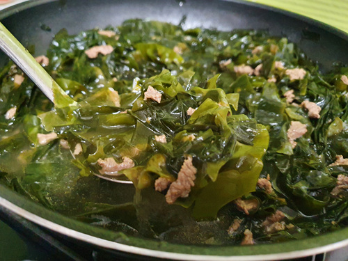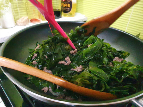 미역국이 넘쳐날 정도로 푹 끓여지면 맛있는 냄새가 온 주방을 진동한다.