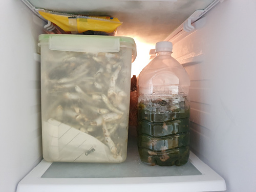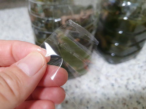 페트병에 담아 놓은 건 깔끔하고 단단하게 스카치테이프로 붙여 고정한 뒤 냉동실에 넣어 둔다.