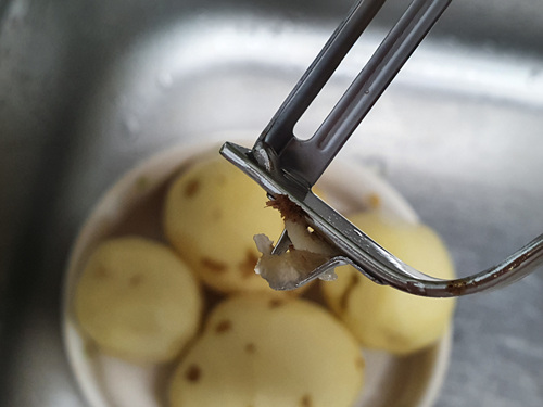 그건 바로 감자껍질을 다 벗기고 나면 간혹 움푹 패인 곳이 있는데요.