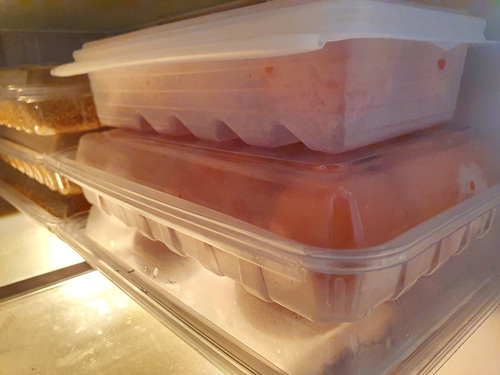 무엇보다도 플라스틱 통에 담으니 냉동실에 마늘 냄새가 나는 것도 방지해 줍니다.
