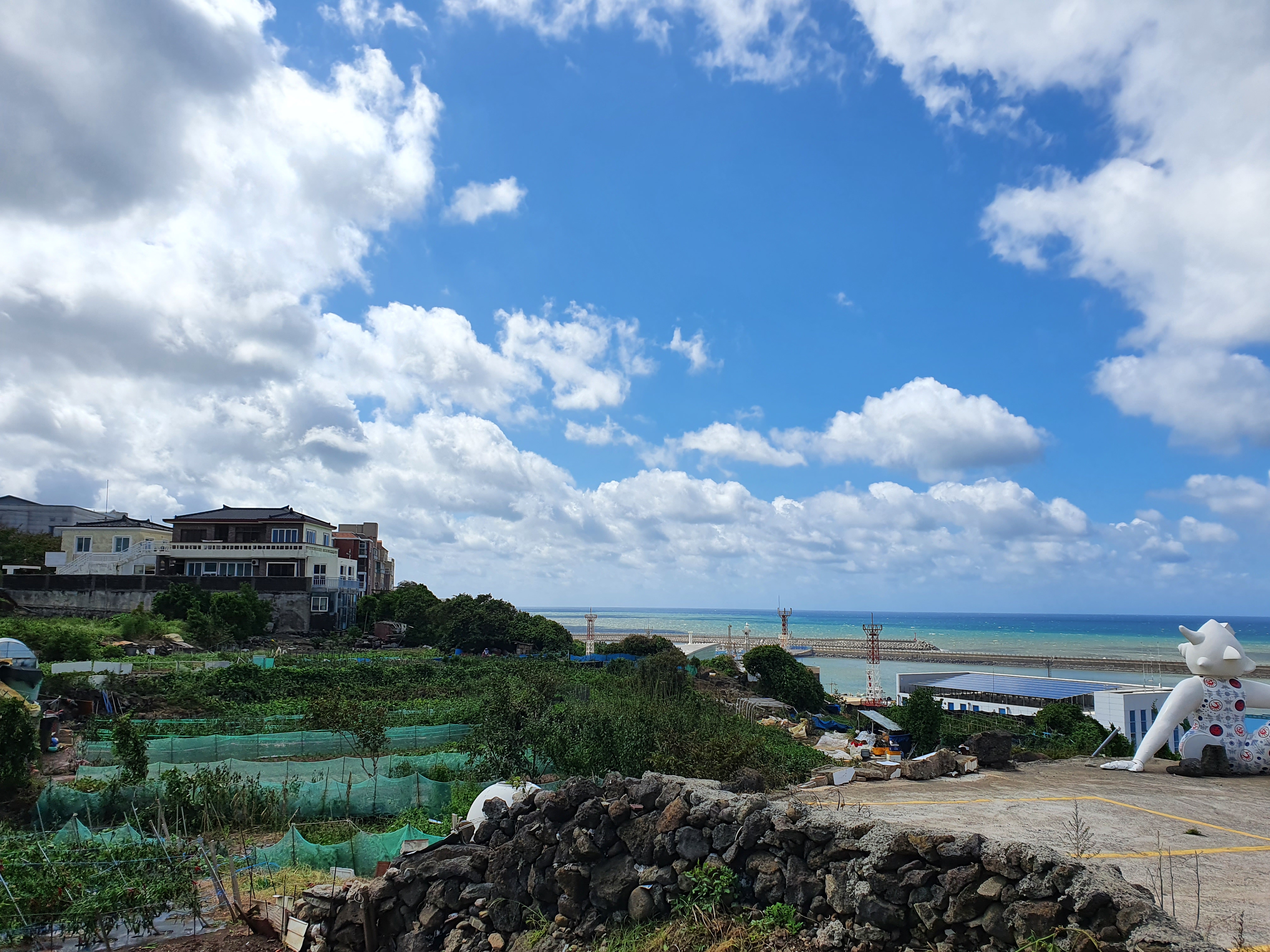 푸른 제주바다와 하늘 그리고 제주항을 한눈에 담을 수 있어 시원한 느낌이 들지요.