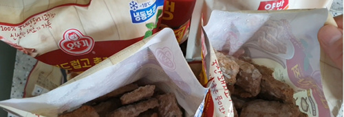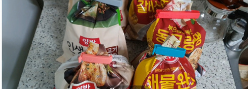 냉동식품 치킨류는 그냥 한 봉지 그대로 세워서 보관하고요.