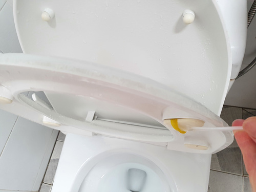 변기 커버를 올리면 안쪽 부분에 네 개의 압력을 지탱해 주는 것이 있는데요.