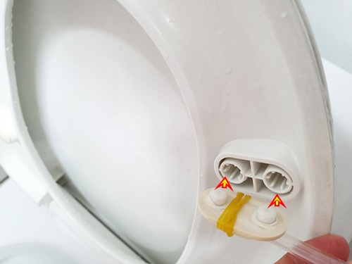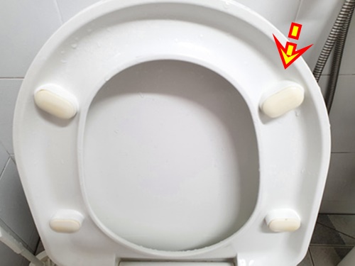 변기 커버를 올리면 안쪽 부분에 네 개의 압력을 지탱해 주는 것이 있는데요.