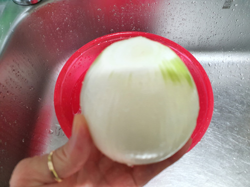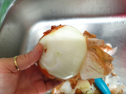 해보면 아시겠지만 참 희한하게 이 상태로 계속 양파껍질을 벗기는데도 눈물이 안 나고 눈도 맵지 않았습니다.