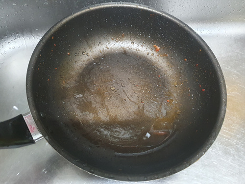 맛있게 두루치기를 해 먹고 막상 설거지를 하기에 너무 지저분한 프라이팬