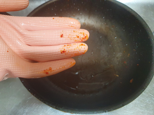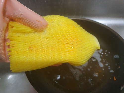 세 번째 - 기름기 가득한 프라이팬 닦을 때 사용해 보세요.