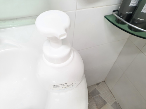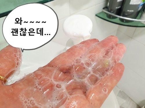 손세정제 통 안에 샴푸를 넣으니 나올 때부터 거품이 되어 나와 바로 머리를 씻을 수 있어 정말 편했어요.