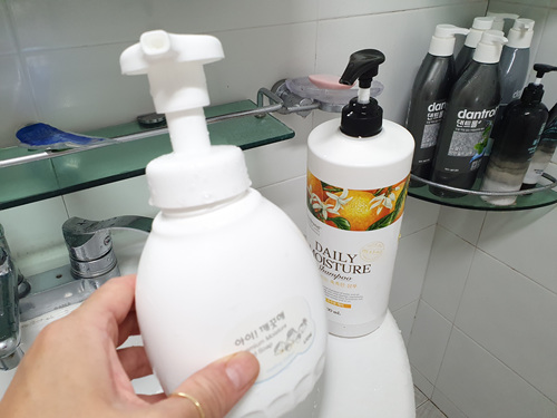 그리고 샴푸를 빈 손세정제 통에 넣었더니...