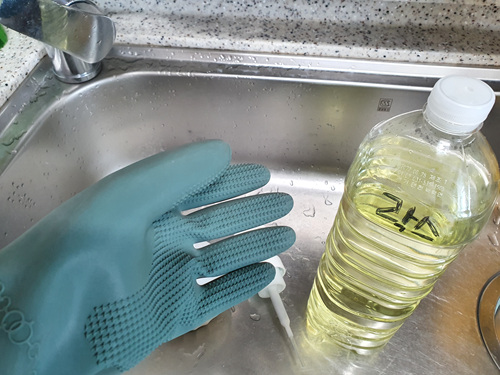 참고로 락스를 사용할 때는 고무장갑 꼭 착용하고 환기 필수입니다.