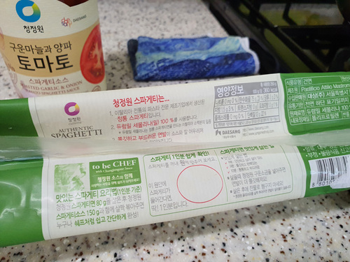 사실 남편 말대로 스파게티가 담겨 있었던 비닐봉지를 보니 양이 생각보다 적어 보였겠다라고 싶었죠.