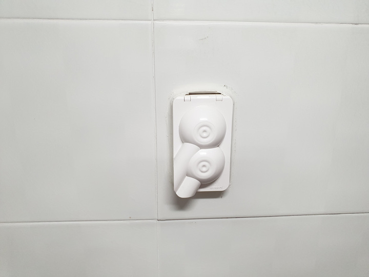 보통 욕실의 콘센트는 뚜껑이 되어 있는 경우가 많습니다.