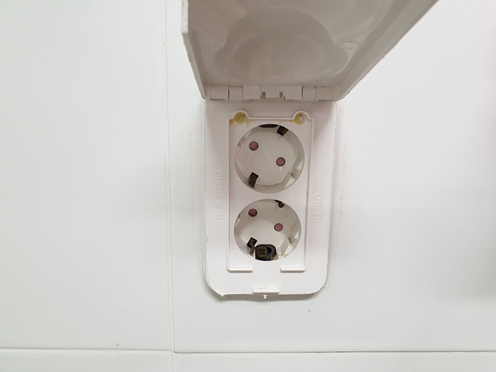 보통 욕실의 콘센트는 뚜껑이 되어 있는 경우가 많습니다.