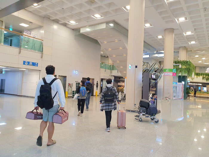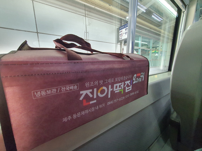 공항에 도착하니... 오잉?! 우리 앞에 사람도 오메기떡을 가지고 육지로 간다.