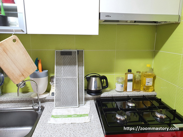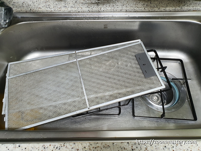 후드필터와 삼발이는 주방세제를 이용해 닦으면 된다.