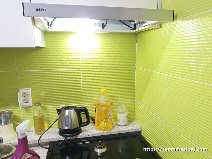 후드, 가스렌지 주변 벽, 가스렌지 아래는 당연히 해야 한다.